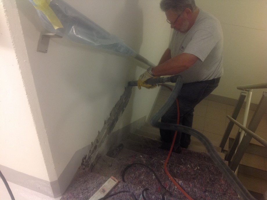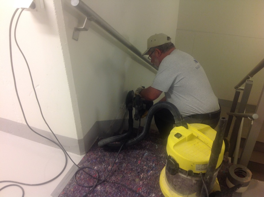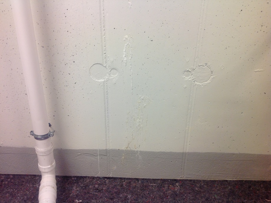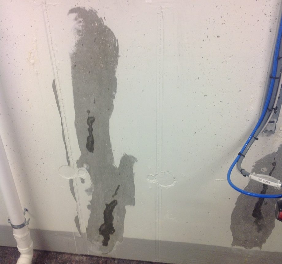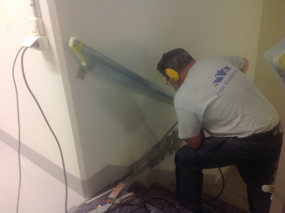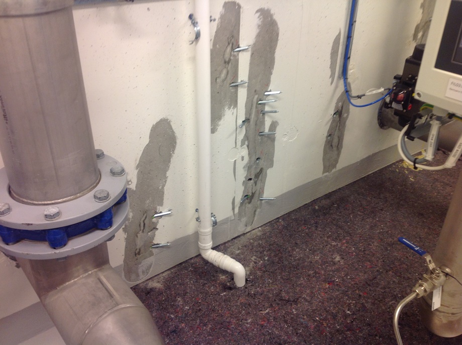 - Hullene er boret inn i betongveggen og benyttet per hull en super packer