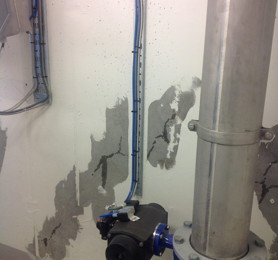 Her tettet vi sprekkene på utsiden av vanntanken til et vannverk.